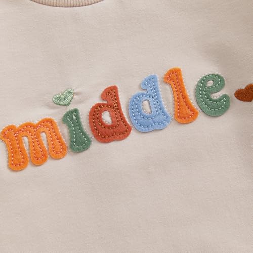 • Designs:Oldest middle youngest shirts for siblings set of 3,big middle little sibling shirt.Baby boy girl bubble romper,toddler kids sweatshirt,''little''/''middle''/''big'' letter patch embroidery and heart patch embroidery pattern,crew neck,long sleeve,ribbed cuffs