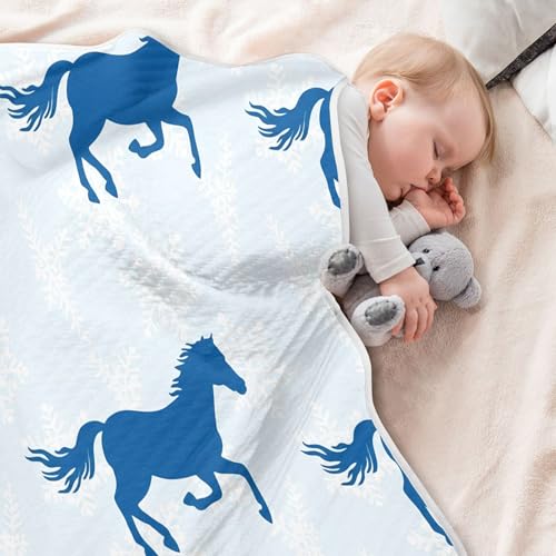 HOT ! Burbuja Blue Horses Baby Blanket for Boys Girls, Nursery Soft Warm Swaddling Receiving Baby Blankets, 30x40 in Toddler Blanket