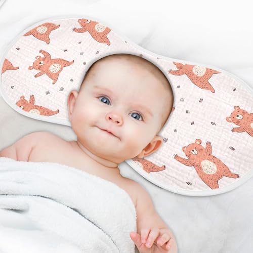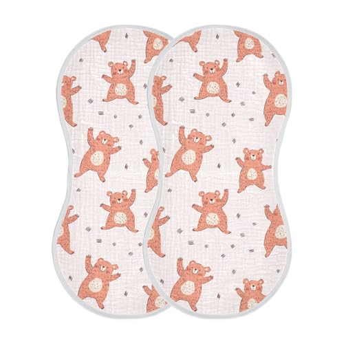 vvfelixl Muslin Burp Cloths Cute Pink Dancing Bear Baby Washcloths for Baby Girl Boys 2 Pack 6