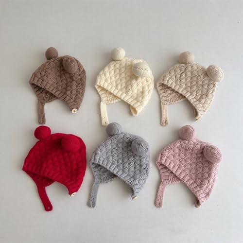 More information about Baby Earflap Hat Knitting Bonnet, Soft & Breathable Warm Bonnet Caps for 0 to 3 Years Infants Unisex Milky White