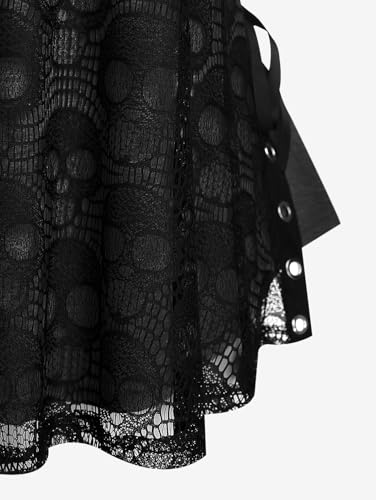 • Featurel--Gothic Tank Top,sleeveless wrap tank top,spaghtti strap tank top,cosplay tank top,skull lace overlay sleeveless strap tank top,swing hem,off shoulder.