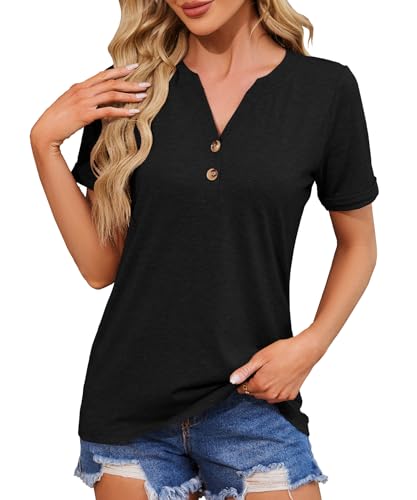 Womens Tops Trendy V Neck Button Down Short Sleeve Tshirts Business Casual Basic Tee Loose Fit 1