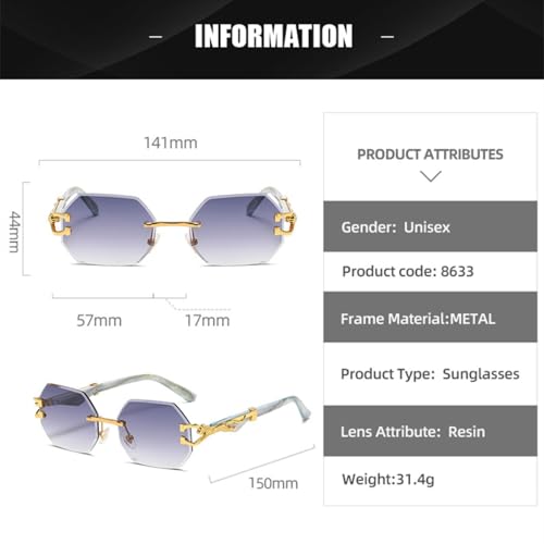 More information about Small Frame Hexagon Rimless Sunglasses for Men Retro Luxury Uv400