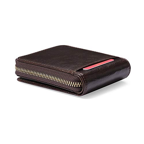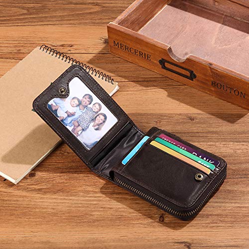 GOIACII Wallets for Men Genuine Leather Front Pocket Wallet RFID Zip Around Bifold Credit Card Holder 6