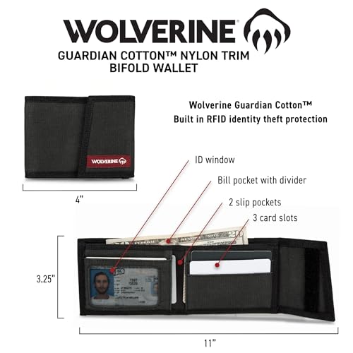 Wolverine Men's RFID Blocking Rugged Bifold & Passcase Wallets (Avail in Cotton Canvas Or Leather) Bi-Fold 4