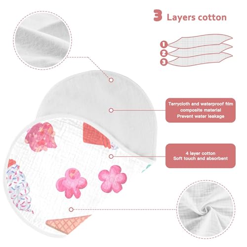 xigua Ice Cream Cones Baby Burp Cloths for Newborn Boys and Girls 4 Pack, Soft & Absorbent Cotton Baby Burp Cloth, Baby Washcloths, Newborn Towel, Burp Rags 3