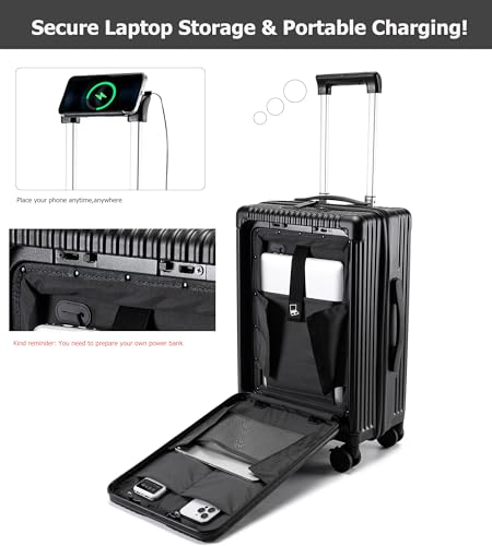 • Built-in Charging Ports: Stay connected with integrated USB and Type-C charging ports. Simply connect your power bank to the internal USB port and plug your device into the external port for convenient charging. Note: The suitcase itself has no built-in battery - requires your power bank and charging cable to function.