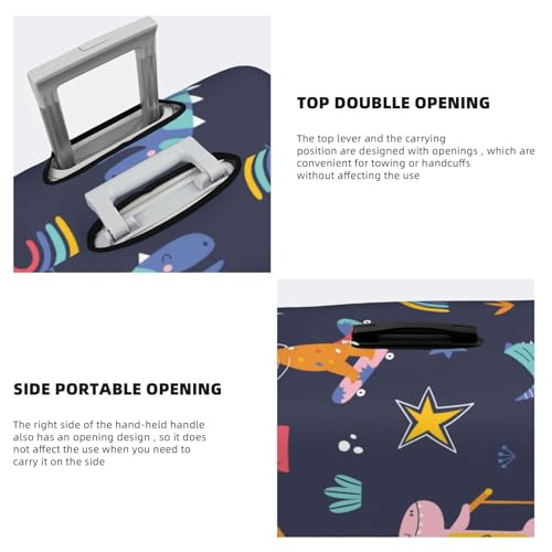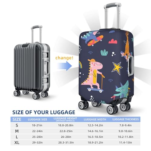 More information about Cartoon Dinosaur Scooter Sport Blue Print Luggage Cover Washable Elasticated Suitcase Covers TSA Approved Stylish Dust and Scratch Resistant Case Protector for Kids and Adults