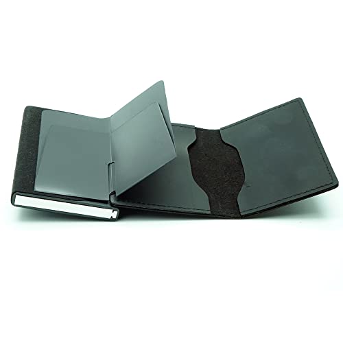 • Slim, Functional & Pocket-Friendly Designed for everyday carry, this ultra-slim wallet fits easily in your front pocket. Holds 1–6 cards in the pop-up case, plus folded cash and 2 extra cards in quick-access slots — compact without sacrificing utility.
