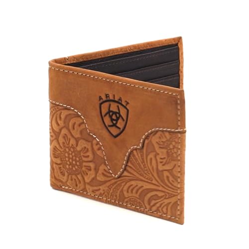 HOT ! ARIAT Men's Genuine Leather Floral Embossed Bifold Wallet