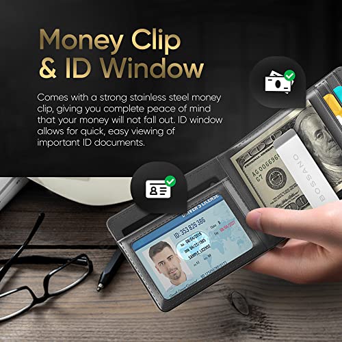 Slim Wallet for Men - RFID Wallet for Men, Eco-Leather Wallet for Front Pocket with Strong Money Clip, Multiple Card Slots, AirTag Slot - Compact & Durable Men's Wallet (Black) 4