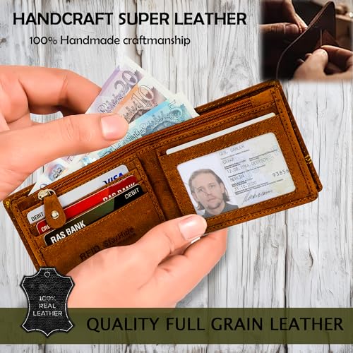 Mens Essentials Wallet RFID Safe Contactless Security Card Protection Distressed Hunter Leather Billfold Purse 1150 6