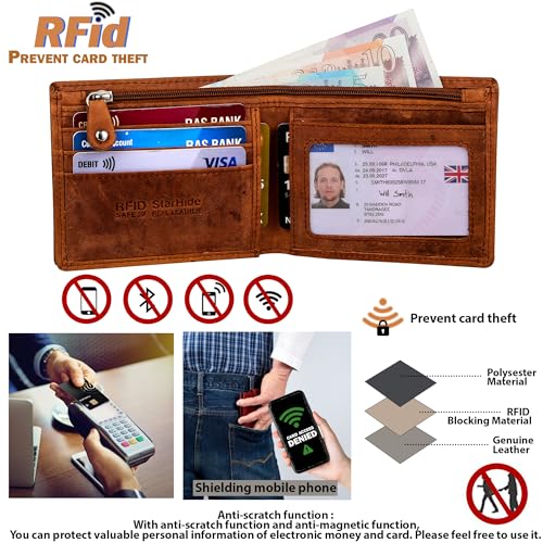 • RFID BLOCKING SECURITY: Our wallets are equipped with advanced RFID SECURE Technology, specifically to block 13.56 MHz or higher RFID signals and protect the valuable information stored on RFID chips from unauthorized scans.