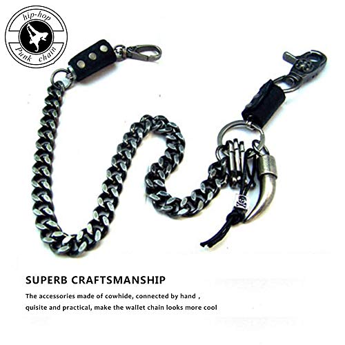HOT ! Wallet Chain for Men Mens Wallet Chains Heavy Duty Punk Skull Pants Chain for Men, Black, OX Horn