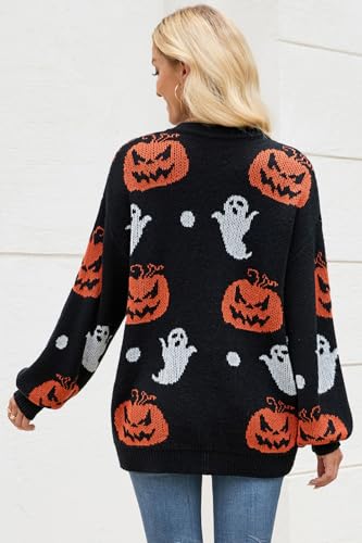 Cardigan Sweaters for Women Halloween Pumpkin Ghost Long Sleeve Loose Casual Knit Cardigans Outwear Coat Tops 2