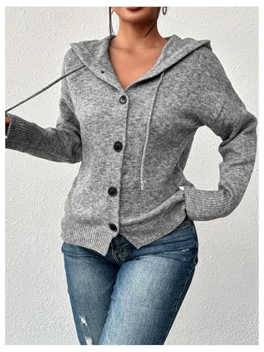 More information about Women's Hooded Cardigan Sweater Long Sleeve Button Front Ribbed Knit Jacket Cardigan Trendy