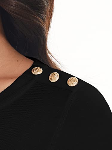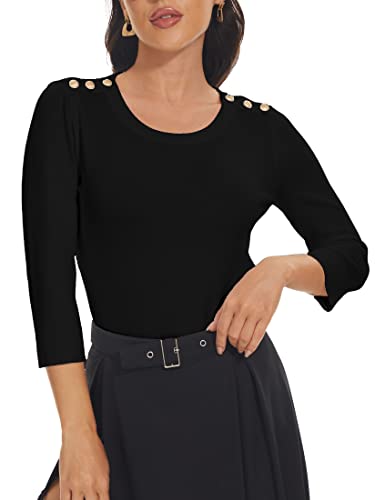 • 【Classic & Stylish Design】Three quater Sleeve Knitted Sweater, Buttons decor on shoulder fashion and elegant, Crewneck Pullover Sweater, Classic Solid color print, Ribbed Hem & Cuffs, Class-Fit Size