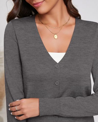 Ficerd 3 Pack Women's Cardigan Sweater V Neck Knit Lightweight Cardigans Long Sleeve Button Casual Tops 6