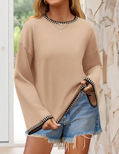 • The soft knit sweater features batwing long sleeve, crew neckline, color block on neckline/cuffs/hem, ribbed knit texture, loose fit, elegant and stylish. Make a statement and stand out from the crowd with our fashionable and comfortable pullover sweater.
