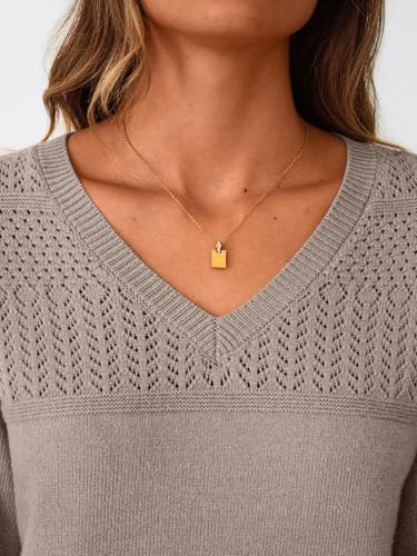 HOT ! LILLUSORY Women's Hollowed-Out V Neck Sweater Business Casual Pullover Tops