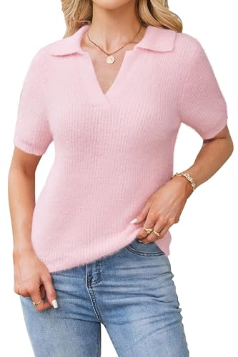 • Features: Short sleeve sweater for women with polo collared, v neck sweaters and fall sweater, cropped sweaters for women, fuzzy cute knit sweater for women, pullover and loose fit, casual cozy sweater tops