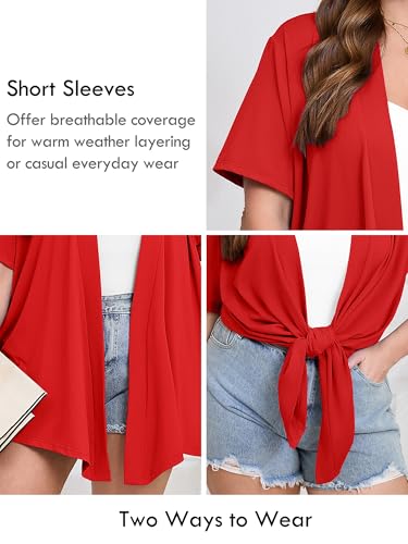 AusLook Women's Plus Size Lightweight Open Front Cardigan Short Sleeve Cover Ups Shrugs Shawls and Wraps Kimono Jacket Coat 4