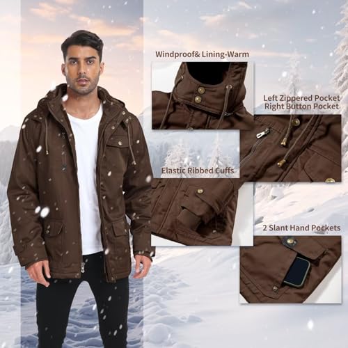 Men's Thick Winter Jackets Fleece Lined Thick Jackets Hood Work Jackets Coat Cotton Military with Cargo Pockets 6