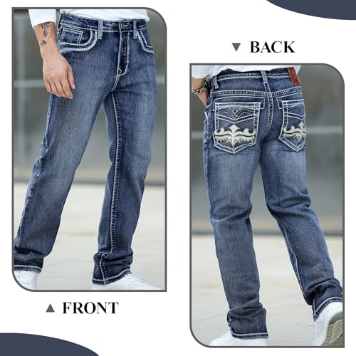 • 【COMFORTABLE STRETCH FABRIC】These men's embroidered jeans are made from a high stretch denim and cotton blend for exceptional softness and lasting comfort. Designed to allow unrestricted movement, these jeans are comfortable all day long, even when sitting for long periods of time without feeling tight.(65.5% Cotton, 33% Polyester, 1.5% Spandex)