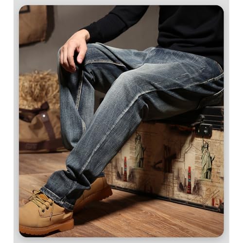 Straight Leg Stretch Denim Pants for Men 28-44 Mens Jeans Vintage Relaxed Fit Washed 4