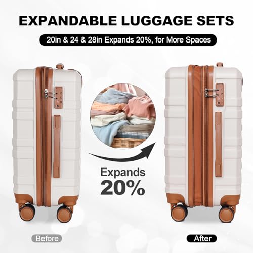 More information about 3-Piece Luggage Set with 360° Spinner Wheels and TSA Lock, Carry-On and Checked Suitcases, Lightweight Hardshell, Blue and Beige
