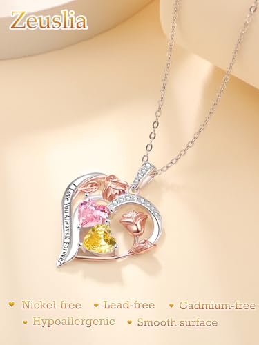 HOT ! Anniversary Birthday Gifts for Wife,Rose Necklaces for Women,925 Sterling Silver Double Birthstone Necklace,Anniversary Birthday Gifts for Women, Jewelry Gift for Wife Girlfriend Mom Her