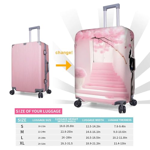 • Pink Cherry Blossom Staircase Trolley Luggage Protector Material Description: Made Of Polyester And Spandex Fabric, Durable, All-Around Double Stitching, High Elasticity, Make Sure Your Luggage Stays Closed During The Trip. Compared To Replacing Your Entire Suitcase,% It Costs Less To Buy A Protective Cover And Can Bring Similar Protection, So It Is Cost-Effective.