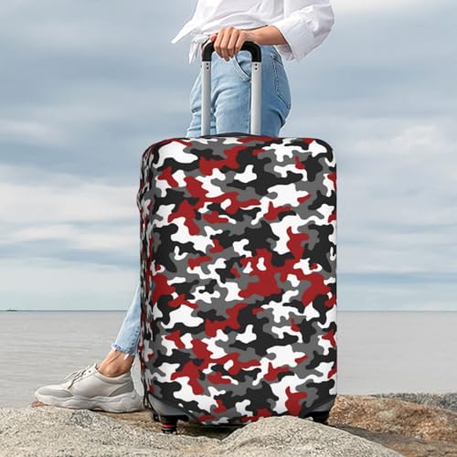 • Versatile Sizing - Perfect Fit: Our suitcase covers Red Grey White Camouflage for luggage come in four specific sizes to ensure an ideal fit for any suitcase. Small covers fit 18-21 inch suitcases, Medium are perfect for 22-24 inches, Large cover 25-28 inches, and X-Large accommodate 29-32 inches. The elastic material ensures a tight and secure wrap around your luggage.