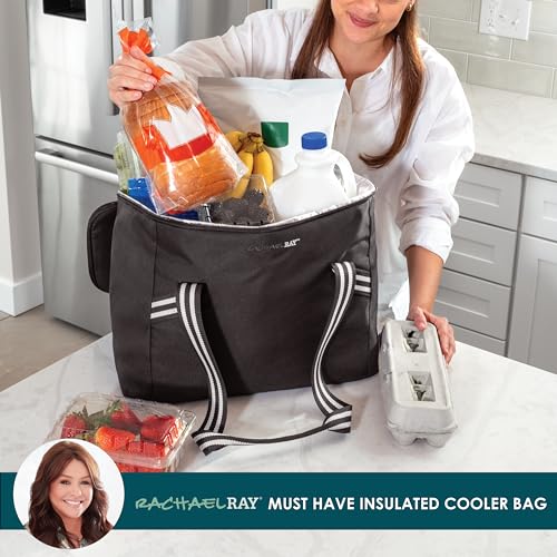 HOT ! Rachael Ray Field Tote - Soft Sided Zippered Cooler Bag, Insulated & Leak Proof Grocery Bag, Portable Travel Cooler, Hot or Cold Carrier, Black