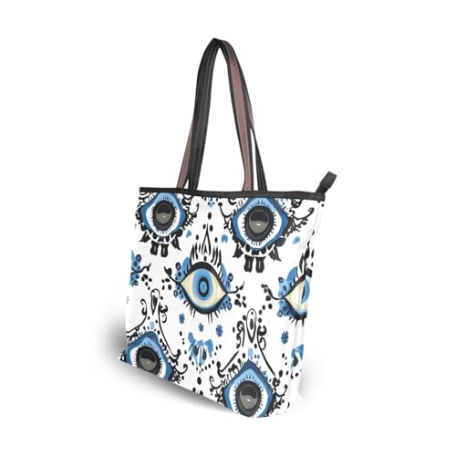 HOT ! Women's Tote Bag Evil Eye Pattern Print, Large Capacity Zipper Shoulder Bag Handbag Reusable Grocery Bag Large