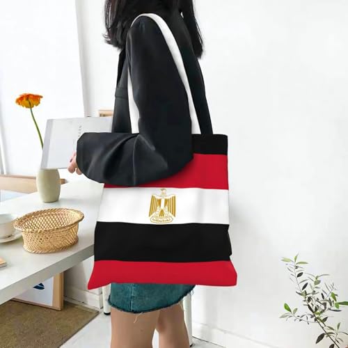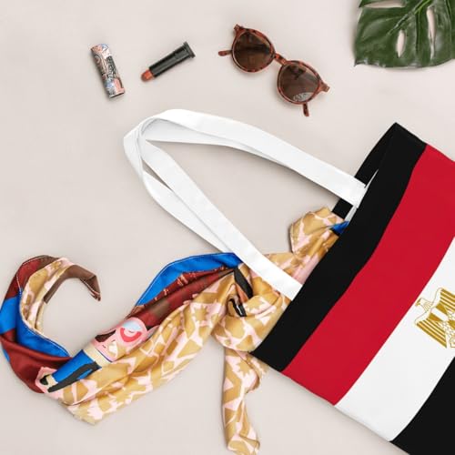 Egyptian Flag Print Polyester Canvas Tote Bag, Shopping Bag With Reinforced Handles, Reusable 5