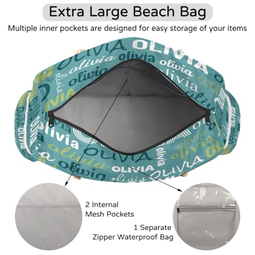 Custom Name Beach Bag for Women and Men Personalized Extra Large Waterproof Zipper Travel Tote Bags 2