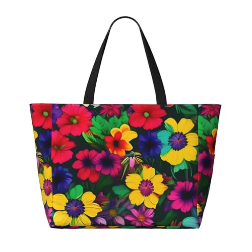 • Stylish & Vibrant Design. Stand out with our eye-catching, Rainbow Flowers pattern print beach bag that radiates fun and energy! Whether you are heading to the shore, pool, or gym, this playful pattern adds a splash of joy to your adventures. Unlike plain totes, our unique design turns heads and sparks conversations - because who says practicality can not be fashionable?