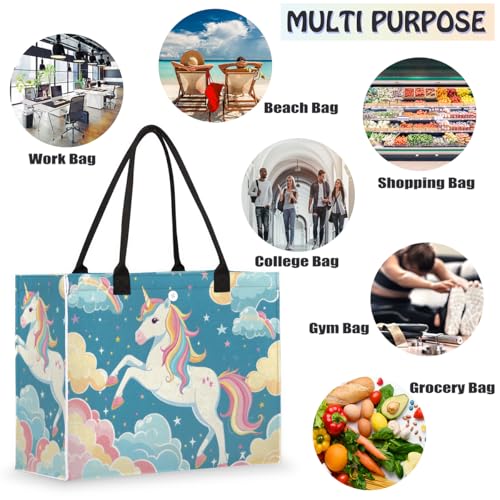 HOT ! Rainbow Unicorn Stars Tote Bag for Women Large Beach Bag Reusable Tote Bags for Work Travel Beach Shopping