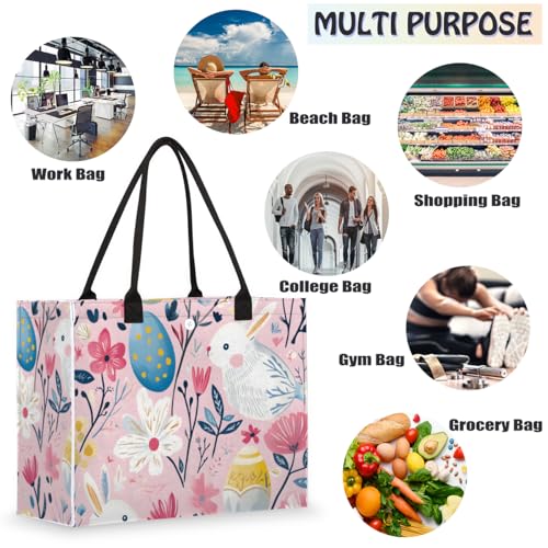 Bunny Eggs Easter Tote Bag for Women Large Beach Bag Reusable Tote Bags for Work Travel Beach Shopping 6