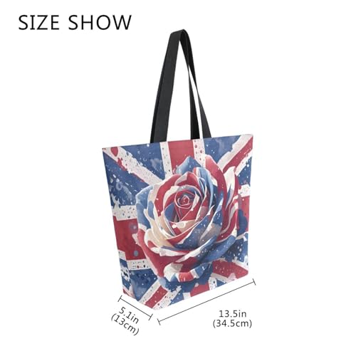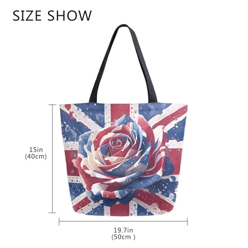 HOT ! Extra Large Shoulder Tote Bag for Beach Travel Weekender Gym British Flag Rose Reusable Grocery Canvas Shopping Bag