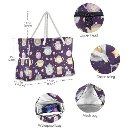 Coffee Mugs Beach Bag & Travel Tote Bag Large Sandproof with Zipper Closure, Wet Pouch for Swim Gym Travel, Lightweight Foldable Outdoor Bag 6