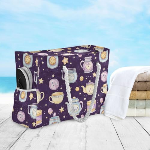 HOT ! Coffee Mugs Beach Bag & Travel Tote Bag Large Sandproof with Zipper Closure, Wet Pouch for Swim Gym Travel, Lightweight Foldable Outdoor Bag