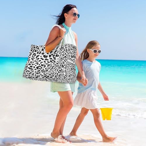 Leopard Print Beach Bag & Travel Tote Bag Large Sandproof with Zipper Closure, Wet Pouch for Swim Gym Travel, Lightweight Foldable Outdoor Bag 7