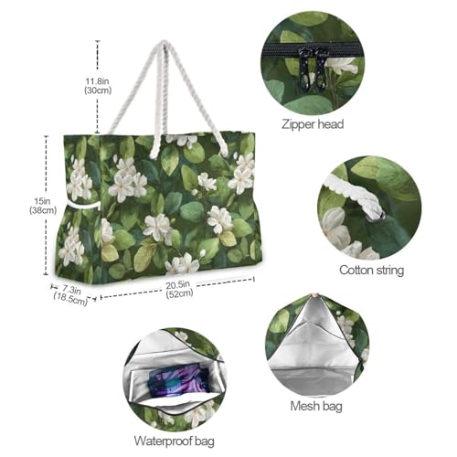 susiyo Jasmine Flowers Beach Bags for Women Large Travel Tote Bag Waterproof Sandproof Lightweight Swim Pool Bag for Family Outdoor 3
