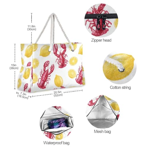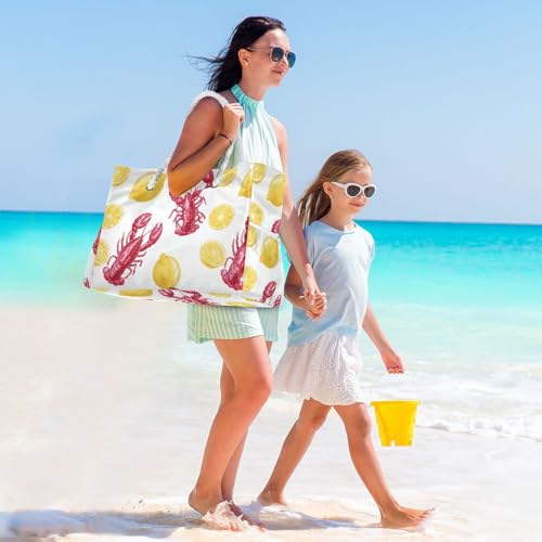 HOT ! susiyo Red Lobster Lemon Beach Bags for Women Large Travel Tote Bag Waterproof Sandproof Lightweight Swim Pool Bag for Family Outdoor