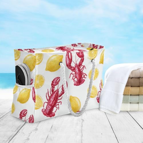 susiyo Red Lobster Lemon Beach Bags for Women Large Travel Tote Bag Waterproof Sandproof Lightweight Swim Pool Bag for Family Outdoor 3
