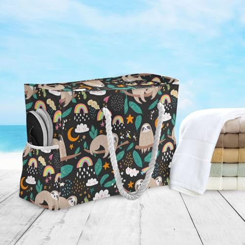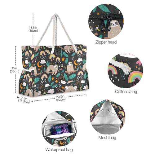 HOT ! Cute Sloths Hanging Beach Bag & Travel Tote Bag Large Sandproof with Zipper Closure, Wet Pouch for Swim Gym Travel, Lightweight Foldable Outdoor Bag