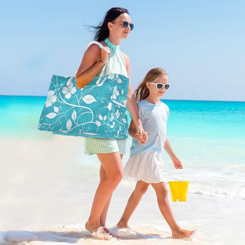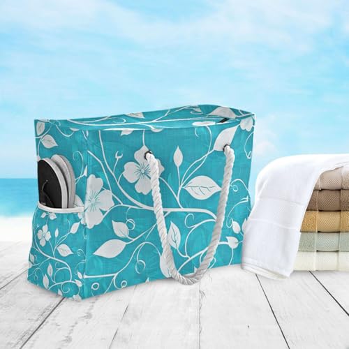 Flowers Blue Weekender Bag Women Waterproof Sandproof with side pockets Large Tote For Women for Pool Gym Grocery Travel 6
