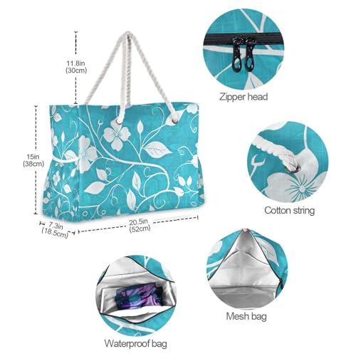 More information about Flowers Blue Weekender Bag Women Waterproof Sandproof with side pockets Large Tote For Women for Pool Gym Grocery Travel